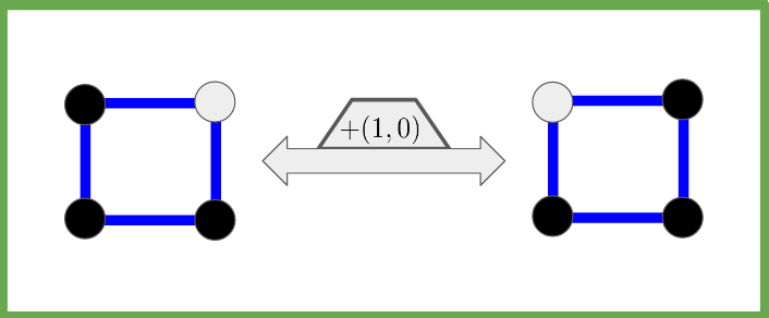 Next in our journey, we will look for all sorts of symmetries that our objects have. To get some intuition and be able to visualize the objects, lets restrict our problem to the case. In this world, our first set is just