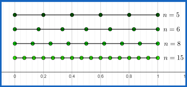 In my postdoc, one of the problems that came up in my research was about distribution of rationals in all sorts of places. For example, the most “standard” way in which we think about rationals distribute inside the real line is to fix the denominator