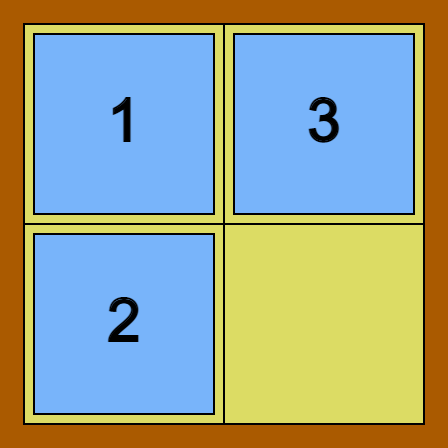 The simplest board is the board. However, this board will only have one empty place without any actual pieces, so it is also trivial. A board with 2 places will only have 1 numbered piece, so we didn’t even get to switch the last 2 pieces. To get to anything interesting, we need