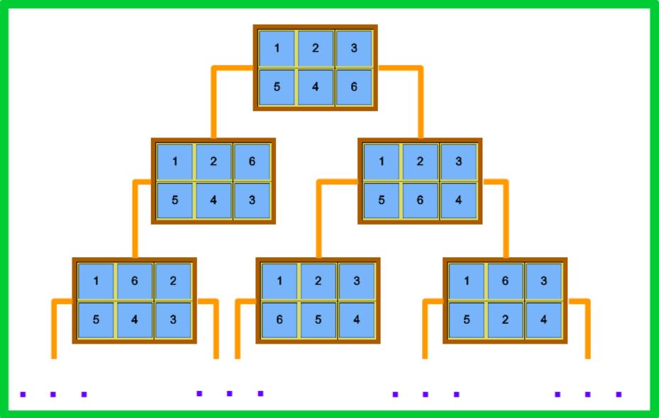 The number of orderings is now which is still not that large. Considering these orderings as vertices, and the legal moves as edges, we get a graph where the connected component of our initial state contains all the reachable states. Using any graph transversal algorithm will work here, and you can check that exactly