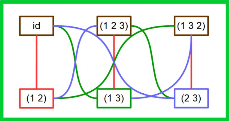 One property that can be seen in our simple examples, is that the parity of a permutation doesn’t change when we relabel the elements, or more precisely two permutations with the same cycle structure have the same parity. For example, if one 3-cycle is an even permutation, then all 3-cycles are even permutations. Another example, which you can check in is that